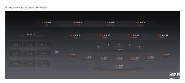而“全域安全2.0”技术体系涵盖的内容,主要包括生命安全、健康安全、财产安全、隐私安全四大安全域,结合用户用车场景,以及当下可落地的汽车安全技术,又可以被更细致的分为驾驶安全、主动安全、被动安全、救援安全、健康安全、新能源安全、防盗安全、数字安全、公域安全。