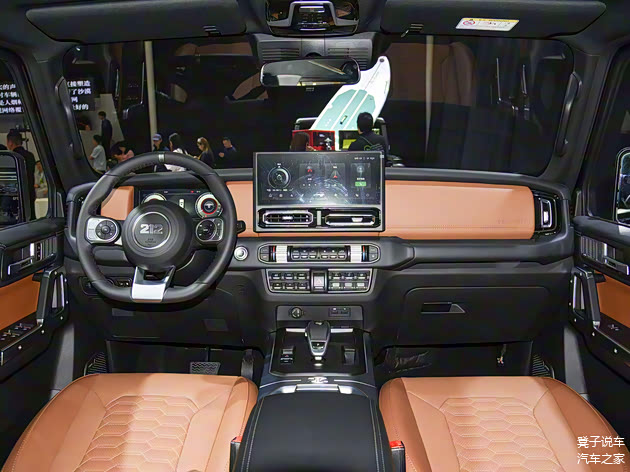 内饰兼顾硬派与实用,10.25 英寸仪表 + 12.3 英寸中控双联屏支持导航和手机互联,前后雷达、360 度全景影像都是标配,停车脱困更省心。车内保留大量物理按键,空调控制区和越野功能区操作直观,盲操作也不耽误分心。