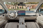 新车的前脸造型很抢眼,使用了大面积封闭式设计,上部是突出的折角式造型,大灯为分体式设计,上部是细长菱形轮廓,内部是条带形灯带,视觉效果很年轻运动。牌照框上部带有长条形进气孔,底部是黑色格栅,下包围使用了黑色涂装。