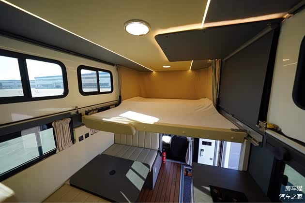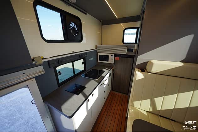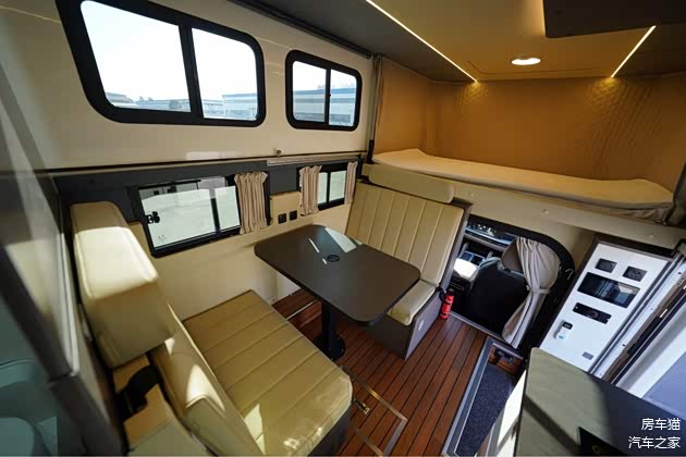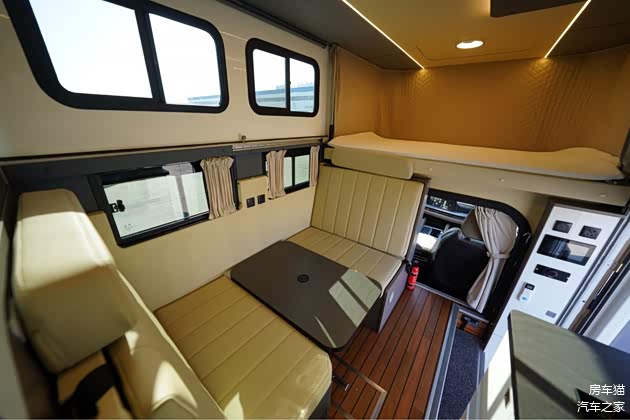 生活区配备了可拆卸挂桌和加长对卡座可变床(8501×900mm),可以根据需要进行灵活调整。推拉窗保证了车内的通风和采光,空调48V则为车内提供了舒适的温度环境。