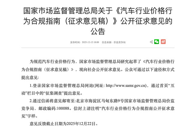 两天前,国家市场监督管理总局发布了“汽车行业价格行为合规指南”(征求意见稿)。