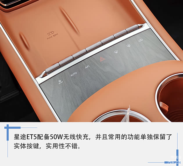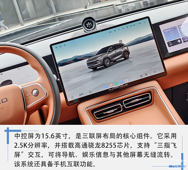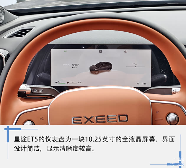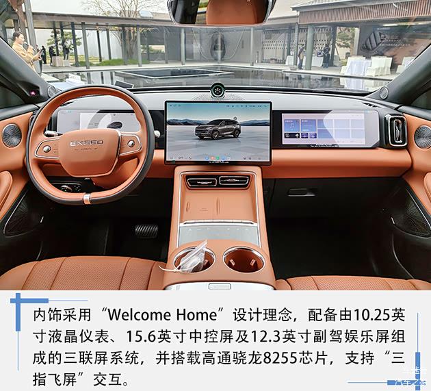 内饰方面,星途ET5的内饰采用“Welcome Home”设计理念与中轴对称布局。其配备由10.25英寸液晶仪表、15.6英寸中控屏及12.3英寸副驾娱乐屏组成的三联屏系统,并搭载高通骁龙8255芯片。车内软包覆盖率高,并提供木纹饰板等材质,整体风格简洁。