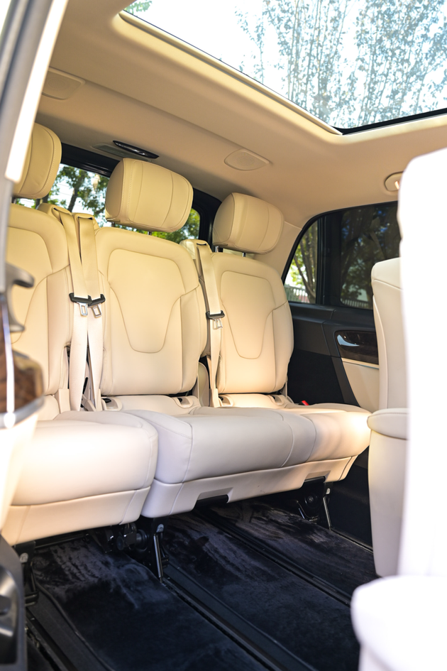 虽然第二排是航空座椅,占用了很大的空间,但是稍作调整,第三排座椅进出通道的空间还是非常宽敞,我只要稍微弯腰就能直接步入。