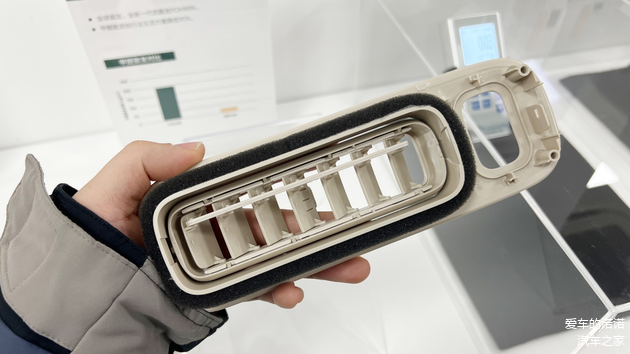 其实不光是车内的空调出风口,从车子内饰的表皮、表皮下面的海绵再到座椅的发泡填充理想全部用了低散发材料,这基本上是从源头控制住了甲醛和车内的其他异味。