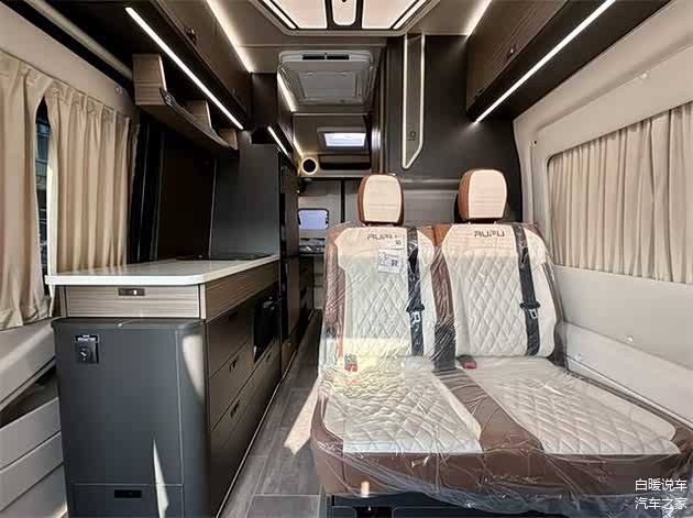 安全与细节配置更显贴心。四路监控系统(含32G内存卡)实时守护车辆安全,CO/烟雾报警器与灭火器时刻防范风险;主副驾驶安全气囊、预紧安全带与防潜滑功能座椅,为驾乘人员筑牢安全防线。12.3寸双联屏搭配自动空调、PM2.5过滤功能,兼顾科技感与健康需求;电动调节加热后视镜、自动LED大灯与自动雨刮,让恶劣天气下的驾驶更轻松。美标食品级进口水路保障用水安全,AcryForm进口定制可开启全景天窗与中门防蚊推拉纱帘,让车内随时能引入新鲜空气与自然光线。