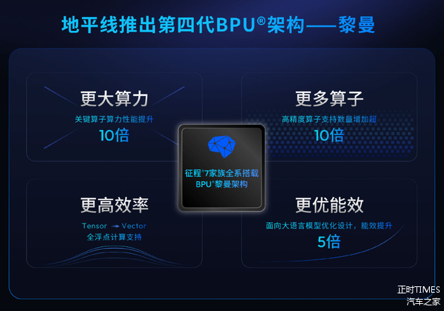 该架构具有更大算力、更高算子、更高效率及更高性能等特点,其中关键算子算力性能较上一代BPU架构提升十倍。