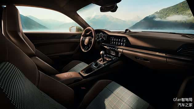 外观采用专属F.A.金属绿车漆,灵感源自大师当年座驾,搭配黑色Classic锻造轮圈与1963年版品牌徽章,车尾镂空格栅嵌入“90 F.A.”金色铭牌,辨识度拉满。内饰以松露棕皮革与专属格纹织物混搭,仪表台镶嵌带初代911剪影的金色铭牌,铭刻大师签名与限量标识。