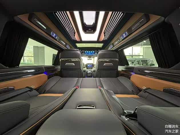细节配置尽显贴心,兼顾实用与尊崇。双开天地尾门设计兼顾实用性与仪式感,电动后尾门搭配无钥匙进入功能,上下车与取放行李更便捷;全景天窗让车内采光充足,随时可欣赏沿途风景;车内遍布4个USB/Type-C接口与手机无线充电板,满足全员充电需求,220V电源接口更能应对户外办公、露营用电等特殊场景。外后视镜支持锁车自动折叠、倒车自动下翻与自动防眩目功能,LED前大灯与自动雨刮适应不同天气条件,车顶行李架则为户外装备提供额外存放空间,全方位满足多场景出行需求。