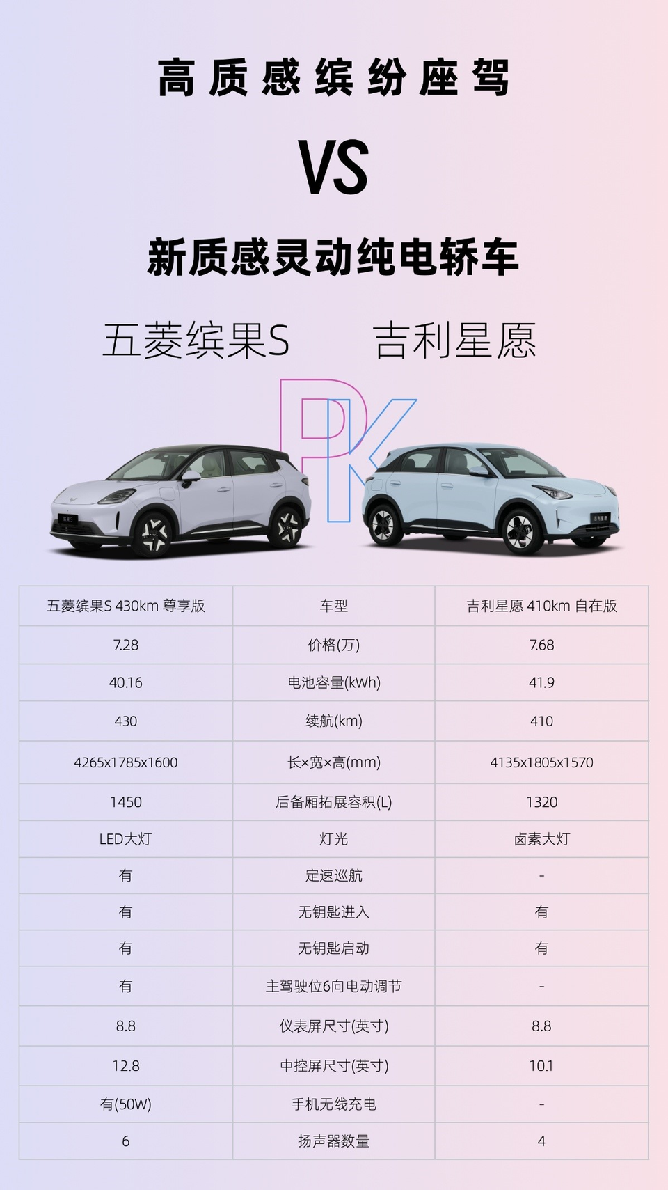 这样的预算选纯电代步车,缤果S和星愿可以说是绕不开的两个热门选择,这两款车都来自大厂,品质可靠,而且销量口碑有保障,如果从中选择一款的话,你更看好哪款呢?