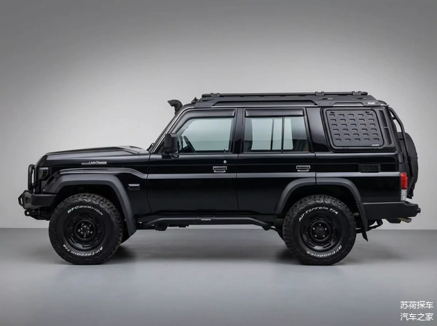 侧面升级了车顶行李架、管状侧踏板、侧装储物支架,原厂就配备了涉水喉和宽体轮眉,整体的气场相当足。另外,LC76改装版还升级了全新的黑色锻造轮毂,搭配抓地力极强的轮胎。