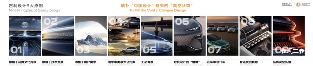 从根脉到主张再到特征,这套理论背后,伴生着中国色吉利青、吉利纹样、中国R角、吉利品牌字体、吉利设计九大原则等产学研成果的发布。这些成果的价值没有绝对的评判标准,但俨然迈出了敢做不同、敢求答案的一步