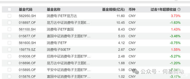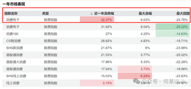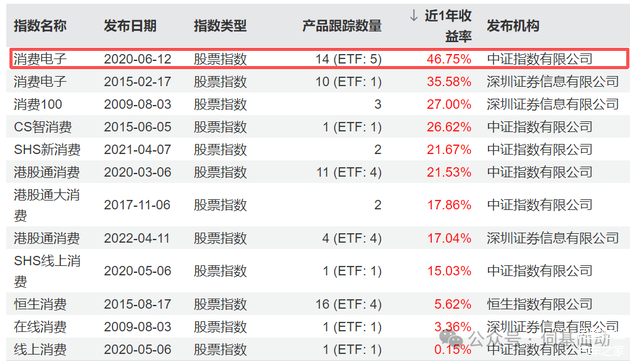 不过,有个中证消费电子指数,倒是跑出来46.75%的近1年收益。