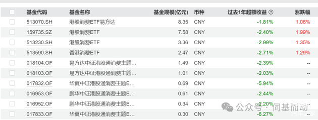 (至于为什么没推荐其他的?因为基金规模太小了)PS:港股通大消费的规模也很小,不太推荐。要看传统消费,就看港股通消费算了。