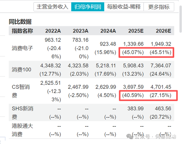 业绩预喜方面,中证消费电子指数2025年、2026年的归母净利润增长率预喜都是45%左右,还是很喜人的。