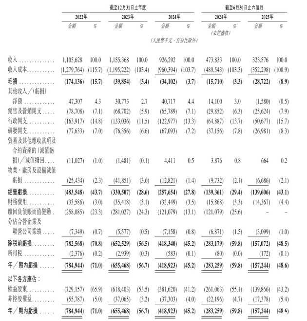 在2022年、2023年和2024年,奥动新能源毛损率为15.7%、3.4%和3.7%,2025年上半年为8.9%,较2024年上半年的3.3%有明显扩大。