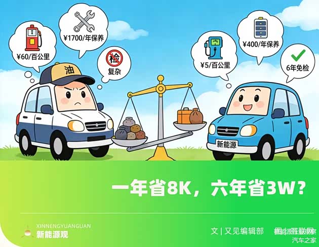在“同价购入”的基准线下,电车的全周期经济性优势依然成立。年均超6000元的节省,主要来自能源和保养这两大日常开支的显著降低。