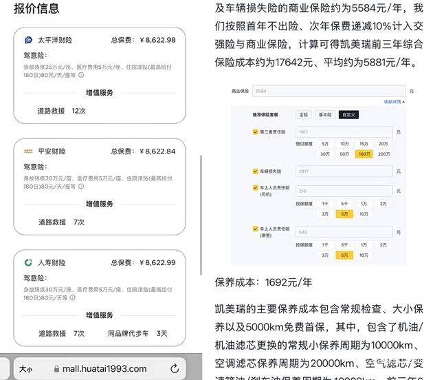 而根据我们和多位车主接触,没出险的情况下,特斯拉第二年的保费可以降到5500元左右,但凯美瑞的报价则为5000元以内。这高出的部分,实实在在地侵蚀着电车在能源上省下的优势。