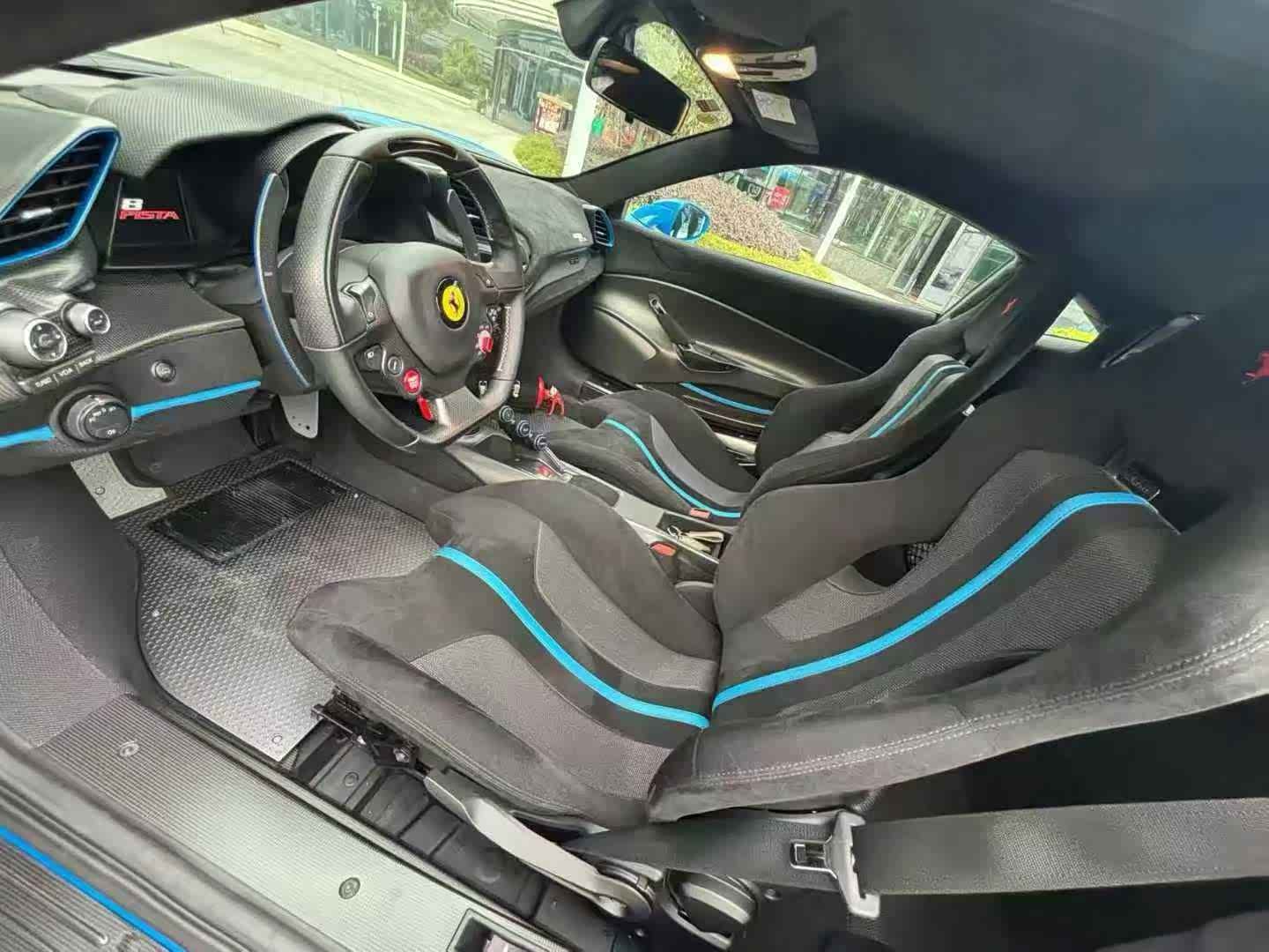 法拉利488Psita TailorMade Dino蓝/黑蓝双拼内饰,配置:赛道座椅,红色卡钳,碳纤维大套件(碳纤维门槛底罩板,碳纤维尾部扩散器,碳纤维尾灯嵌条,碳纤维侧面空气分流器,碳纤维扰流板,碳纤维发动机盏板,碳纤维中央通道,碳纤维门槛踏板,哑光碳纤维内饰)倒车影像+雷达,哑光黑色轮毂,钛合金排气管等配置拉满,限量赛道版的法拉利在国内未来市场一直处于升值的趋势,错过再无,20年上牌、仅行驶:7500公里