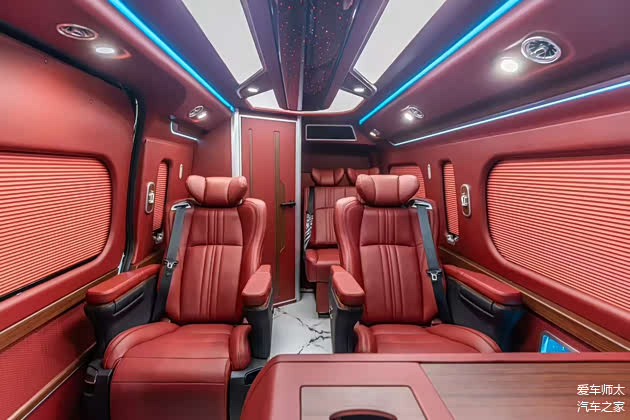 可手动或触控调节灯光、窗帘、空调、影音等电器设备LED航空顶灯:可调色温与颜色,营造商务、温馨或宴会氛围桃木内饰+镀铬套件:提升豪华质感软包地板+脚垫线:防滑静音,易于清洁氛围灯带:贯穿车厢顶部与侧壁。