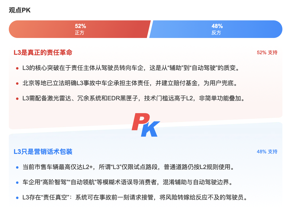 虽然这两款L3级实验车型已被许可测试,但短时间内关于L3的权责和伦理问题争论仍将持续,直至从法律上厘清这种界定。