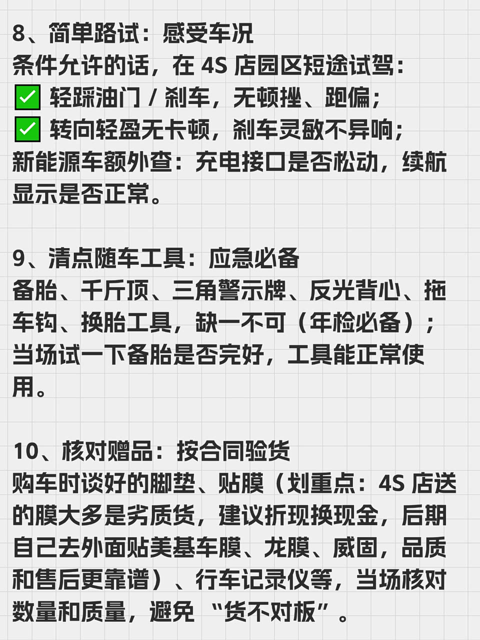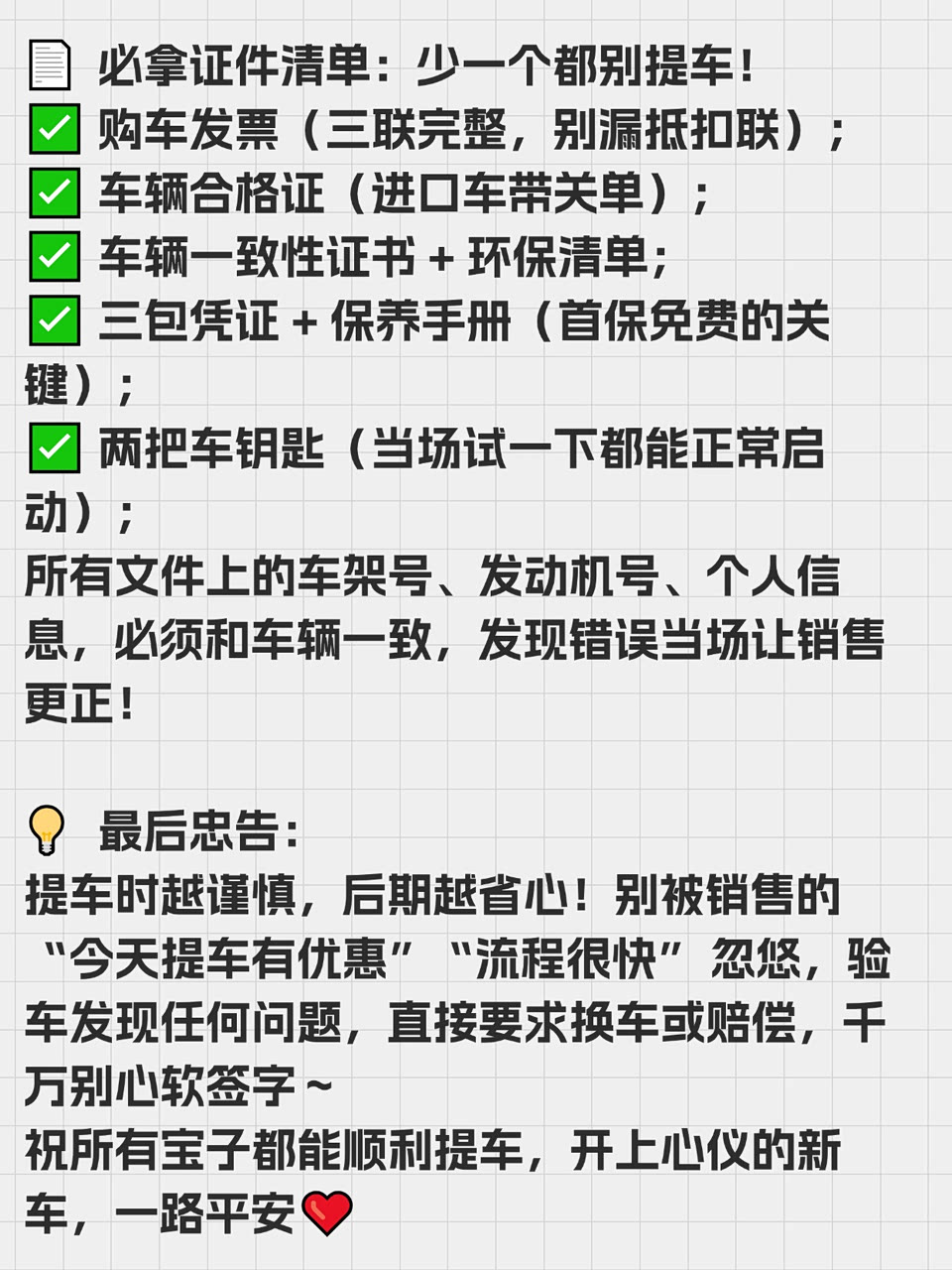提车是开心的事,但越谨慎越省心!按这份流程来,就能避开 99% 的瑕疵车坑~ 你提车时遇到过什么问题?评论区分享,帮更多宝子避坑!👇
