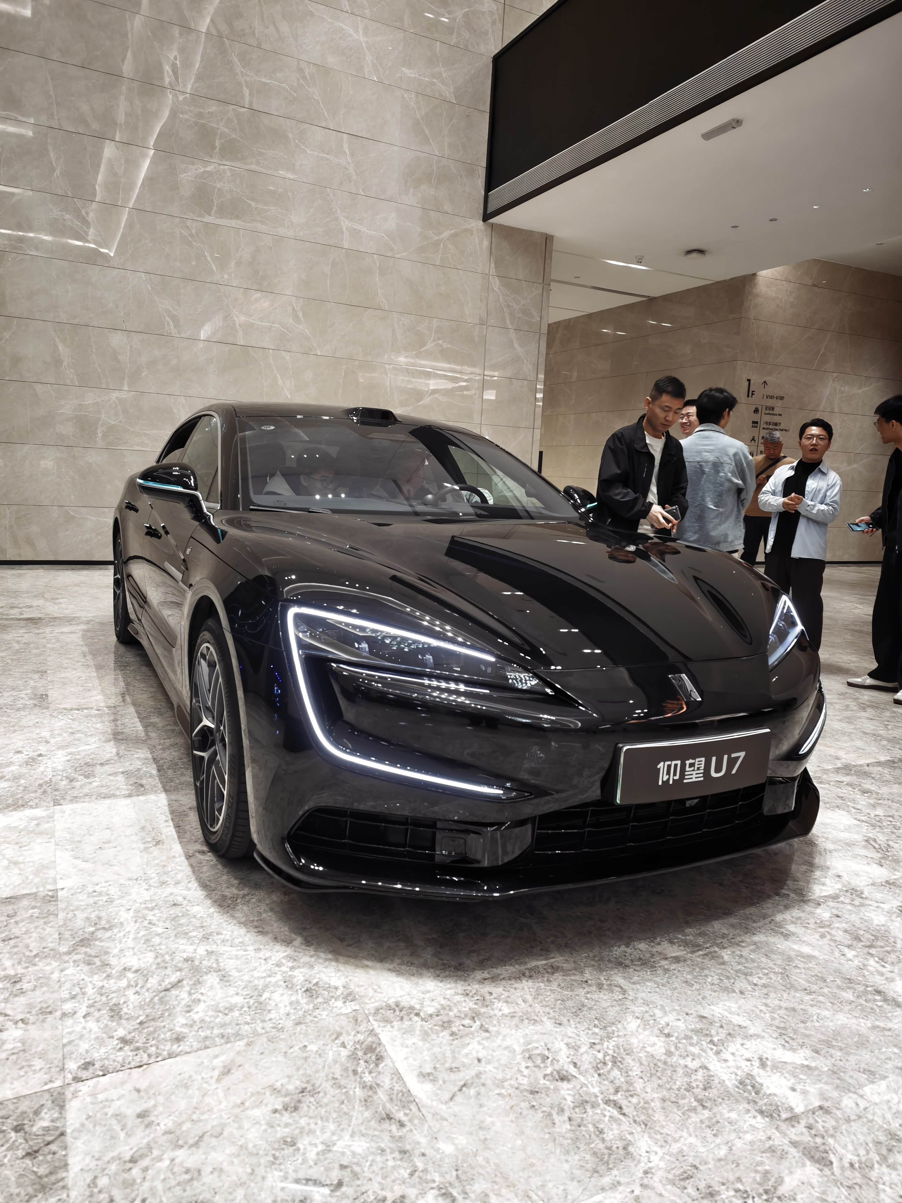 比亚迪六角大楼礼宾楼一楼大厅的展车,方程豹钛7、腾势N9和仰望U7,腾势N9机盖还有高圆圆的签名。 在腾势N9车内看看比亚迪海洋四周年的直播,非常流畅。车内双冷暖箱设计,前后排都有座椅按摩,并且还配置了双50W无线充电。并且还很暖和,在车里看现场很舒适。