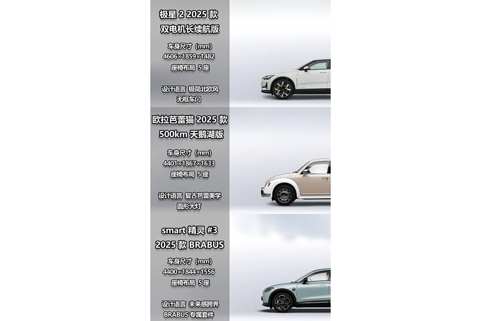 👉 智能驾驶选极星 2/smart,复古舒适选欧拉~