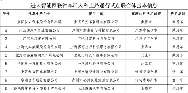 需要注意的是,彼时进入试点名单仅代表通过初步遴选,并不意味着已获得最终的上路许可。
