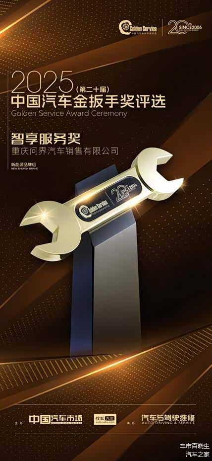 近日,由《中国汽车市场》杂志社与搜狐汽车联合主办的2025(第二十届)中国汽车金扳手奖评选结果正式公布。在本次评选中,问界汽车凭借前瞻性的“智享服务体系”与不断沉淀的用户服务实践,荣获新能源品牌组“智享服务奖”,其服务能力与用户认可度得到专业机构与市场的双重认可。此外,问界全国12家用户中心荣获“金扳手奖百强质选店”称号,有多位主播荣获“十大主播”奖项,展现了其服务生态的全面实力。