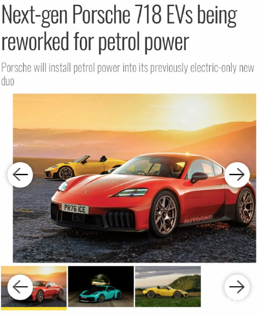 事实上,现在的保时捷为了应对不断变化的市场变革,既推出燃油版的车型,也推出新能源汽车。除此之外,保时捷汽车还将电动车升级成油车,来进一步吸引用户。问题来了,之前的战略规划以及市场调研到底是如何做出来的呢?很明显,保时捷车企误判了,现在正在快速掉头。但有一说一,电动汽车的颜值确实要比传统的燃油车高出不少,我们可以期待一下718变得更加时尚了,你会考虑一下这么一款入门级的小敞篷跑车吗?确实要不是电车时代的到来,718大概率不会复活了。