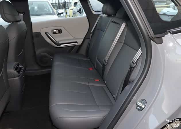 后排座椅材质与前排相同,靠背倾斜角度合适而且有一定的腰部和侧向支撑,坐垫长度也基本够用。侃弟身高175cm,腿部空间有三拳,但头顶仅有一拳,横向乘坐三人没问题,地板平整度较高,车顶有大尺寸全景天幕带电动遮阳帘。提供地台出风口和可翻折扶手。