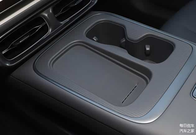 扶手台布置了单手机带50W无线充和通风散热,右侧有双手机位。