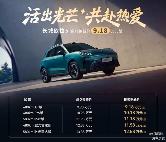 12月16日,长城欧拉5以“求真”为主题正式上市,共推出5款配置车型,限时焕新价9.18万元起。新车将搭载第三代Coffee OS车机系统、激光雷达、Coffee Pilot Ultra辅助驾驶系统、续航起步就是480km。即日起至25年12月31日,下订的用户可享受限时9重好礼。