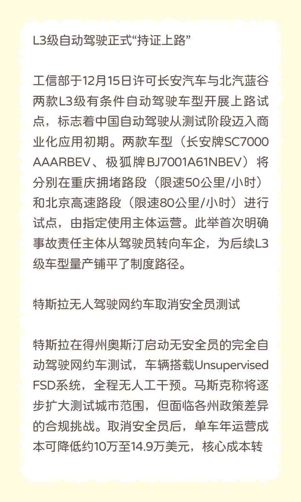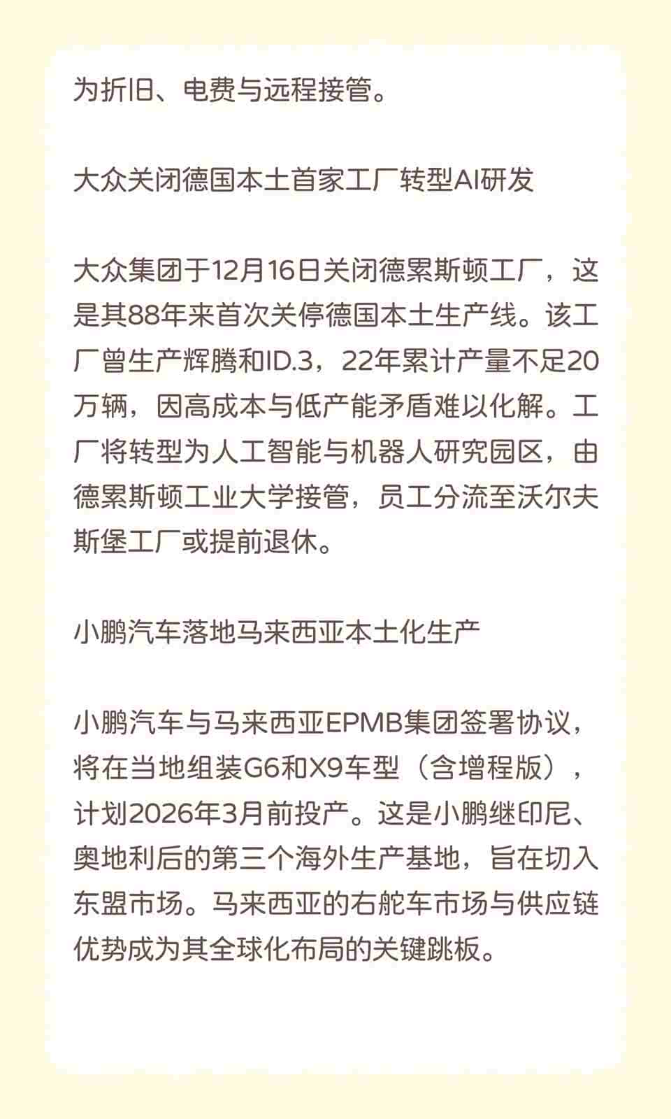 L3自动驾驶试点启动,特斯拉取消安全员测试,大众德累斯顿工厂转型AI研发,小鹏布局马来西亚市场。 #汽车 #掌上汽车