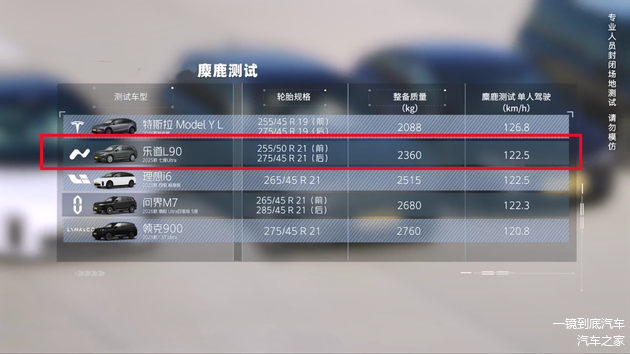 从之前的相关聚道“6座SUV十车对决”大横评中看到,特斯拉Model Y L以时速126.8km/h冲进A区,没有碰到ABC区中的桩桶,不得不承认,在这项展现车辆操控稳定性的测试中,特斯拉Model Y L依靠出色的轻量化,以及富有灵性的ESP标定,取得了非常不错的成绩。而乐道L90在麋鹿测试中获得了122.5km/h的成绩,其轻量化的车身设计,做得也不错,配合前窄后宽的米其林PS EV轮胎(前轮胎规格尺寸255/55 R20,后轮胎规格尺寸275/50 R20),这种鸳鸯胎的设计,也让后轴抓地力更加充沛,更不容易甩尾失控。