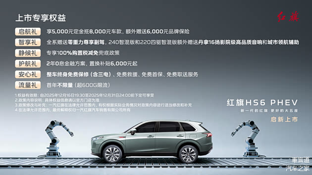 12月16日, 红旗HS6 PHEV的到来,恰是对这一需求的精准回应。作为品牌站在200万用户里程碑的战略之作,这款全新一代大五座旗舰SUV以“为国造车”的底蕴赋能“为家造车”的初心,用17.88万元起的诚意售价,叠加重磅购车权益,让这份豪华与实用触手可及,重新定义了中大型新能源SUV的价值标杆。