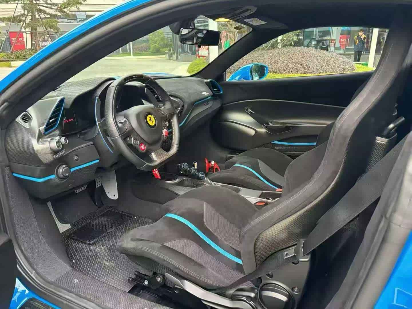 法拉利488Psita TailorMade Dino蓝/黑蓝双拼内饰,配置:赛道座椅,红色卡钳,碳纤维大套件(碳纤维门槛底罩板,碳纤维尾部扩散器,碳纤维尾灯嵌条,碳纤维侧面空气分流器,碳纤维扰流板,碳纤维发动机盏板,碳纤维中央通道,碳纤维门槛踏板,哑光碳纤维内饰)倒车影像+雷达,哑光黑色轮毂,钛合金排气管等配置拉满,限量赛道版的法拉利在国内未来市场一直处于升值的趋势,错过再无,20年上牌、仅行驶:7500公里