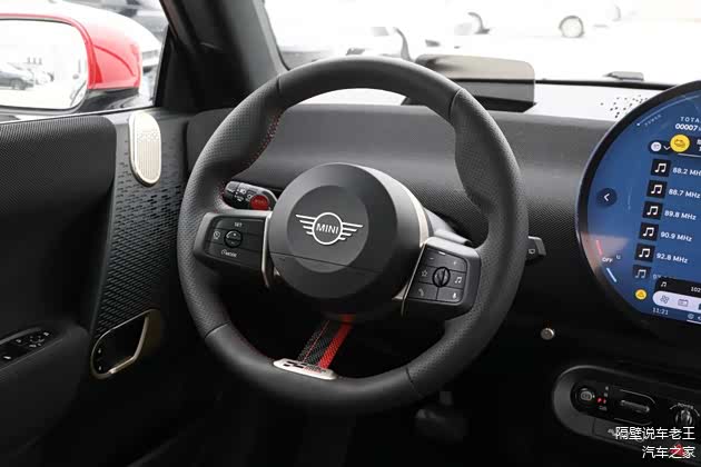 先瞅瞅这身“战斗服”。电动MINI JCW深谙“少即是多”的道理,它没有张牙舞爪的空力套件,而是用黑化车标、红色点缀、18英寸方格旗轮毂和那抹低调的JCW徽章,告诉你什么叫“闷骚的暴力”。这是一种经典、克制的性能美学,像一位穿着定制西装的绅士,脱了外套全是腱子肉。