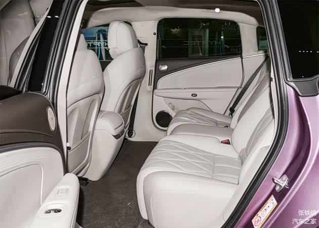 后排地板很平整,后排空调出风口位B柱位置。后排座椅有着不错的设计感和舒适性,坐垫为4/2/4式,其中中间部分坐垫能够向前掀起,提供了隐藏式杯架,靠背上带折叠式扶手,扶手上还提供了触摸屏。