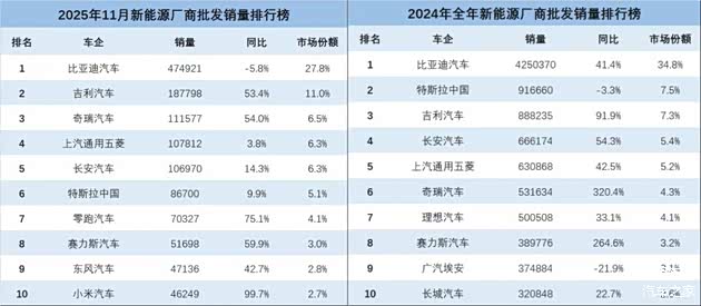 新能源销量榜,好久没这么热闹了。十一月数据一出,不少人发现:老三换人了。奇瑞汽车以超过11万辆的成绩,一举冲到了行业第三。要知道,去年它还在第六名。这次一口气超越了特斯拉、长安等强劲对手,紧随比亚迪和吉利之后。一场漂亮的“弯道超车”,就此上演。