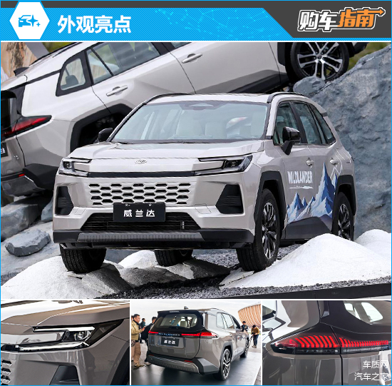 全新威兰达采用丰田最新的家族式设计语言,整体造型与海外版全新RAV4基本保持同步。前脸个性独特的大灯组内置上下两层LED灯带,点亮效果十分出色。无边界中网的设计元素相当丰富,两侧还设计有大尺寸导流槽,营造出很强的运动感。
