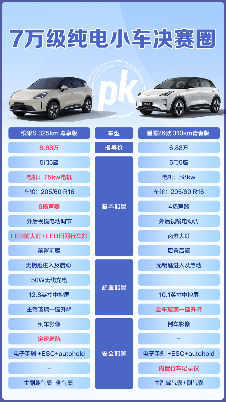 就目前纯电代步车市场来看,可考虑的热门车型还是比较多的,这样的预算完全能够买到一台空间够用且配置丰富的热门代步车,例如今天咱们要说的缤果S和星愿,同为热门大厂出品,这两款车的品质可以说都有保障,如果从中选择一款的话,该选谁呢?