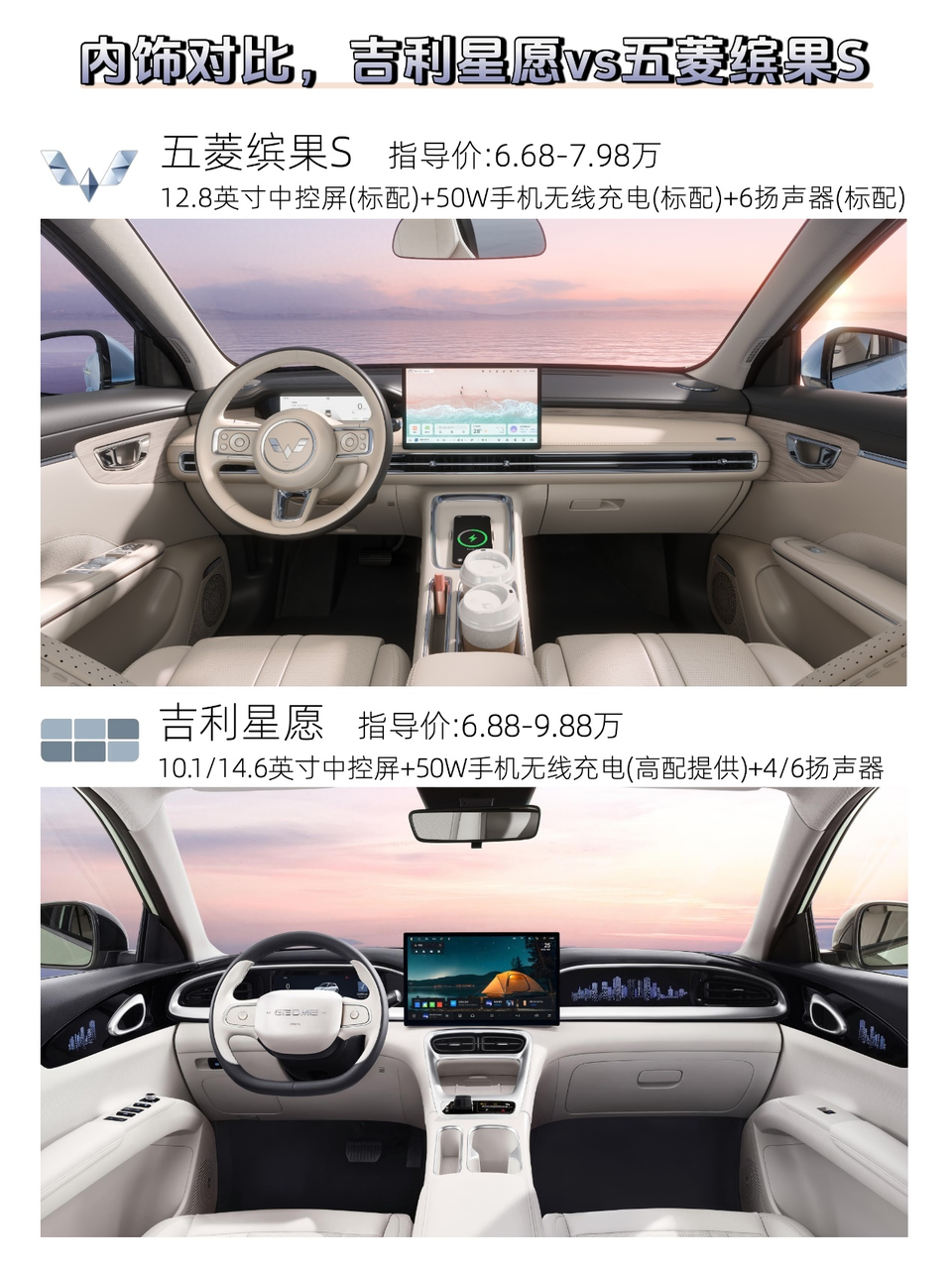 首先,从配置来看,缤果S的表现可以说非常齐全,全系标配12.8英寸超大中控屏,并内置了安卓车机与Deepseek语音大模型,不仅看着大气,语音控制也更聪明,再加上50W手机无线快充、LED大灯、定速巡航等的配备,日常用车便利性可谓是直接拉满;反观同价位的星愿,中控屏尺寸只有10.1英寸,且以上这些贴心配置,大多都需要选装或上高配才有,性价比可以说没有缤果S高。