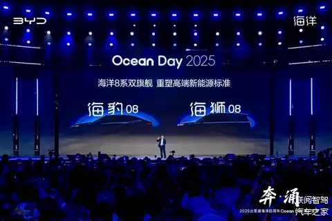 12月15日晚,在2025海洋四周年“Ocean Day”用户盛典上,比亚迪海洋网官宣了两款重磅车型——全新旗舰轿车海豹08与旗舰SUV海狮08。作为海洋网向高端市场发起冲击的“8系双旗舰”,这两款新车确认将于2026年第一季度正式亮相。