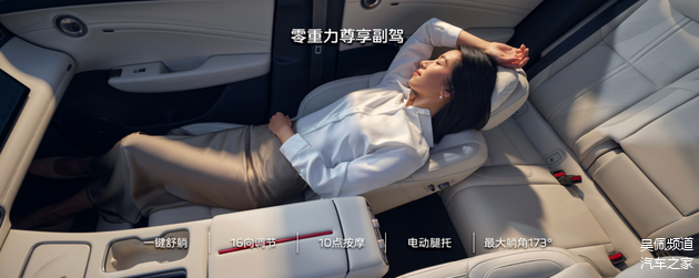 除此之外还是很厚道的,比如前电机的功率,跟其他两个配置同样是168kW。15.6英寸的2.5K双联屏、高通8295P芯片、50W无线充电、四音区的语音唤醒,也都是标配。而前排中间气囊,包括带双级限力的安全带,都跟其他配置一视同仁。就连前排两张座椅的,都是带通风加热功能,后排也能电调,音响是丹拿的12扬声器,不是什么杂牌货。辅助驾驶方面支持高速领航辅助和记忆泊车等等。