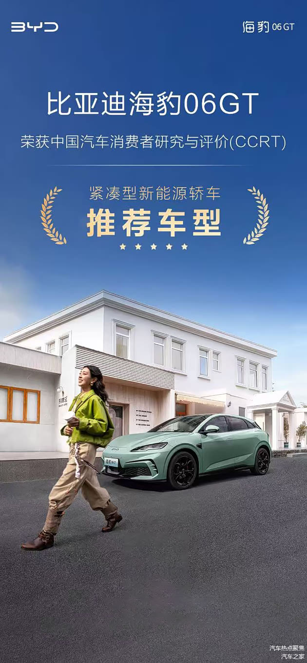 近日,中汽中心汽车测评管理中心公布了CCRT(中国汽车消费者研究与评价)的最新评价结果。比亚迪海豹06GT从10款热门车型中脱颖而出,获评“CCRT选车指南推荐车型”。这一荣誉不仅是对其产品价值的权威背书,也意味着其全能实力获得了专业机构与消费者的双重认可。