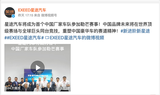 在星途官方社交媒体发布的预告片中,官方以“量产车技术研发的终极实验室”、“以赛道技术反哺量产车型”、“让世界看见中国制造的激情与实力”等表述,清晰展现出奇瑞集团进军WEC赛场的决心与野心。