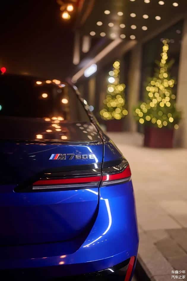 这里拓展几个小细节,第一,这一代的7系不分i和Li、e和Le了,全球范围内都是长轴版,就只是尾标字母的差异,车身尺寸并没有差别;第二,M760e是插混六缸,但宝马还有一个760i,虽然不带M,但搭载的是V8引擎,国内没有;第三,尾标里的“M”和“7”比“60e”要大一些,这样的设计方式在其他最新宝马上都出现了。