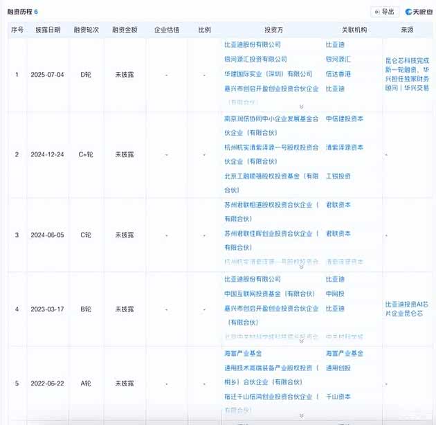 天眼查显示,2025年7月昆仑芯完成的最新一轮(D轮)融资中,成功募资约2.83亿美元(约合21亿元人民币),投资方涵盖了国新基金下属高层次人才基金等,以及比亚迪、中金观博、中国移动和创等产业资本与金融机构。