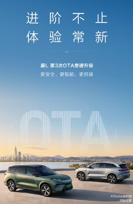 2025年12月17日,比亚迪官方微博宣布:比亚迪唐L的第三次OTA升级今日全面推送,此次升级覆盖了智能座舱、辅助驾驶、人车交互等领域的24项新增功能和13项体验优化,堪称该车型史上最重磅的软件升级。